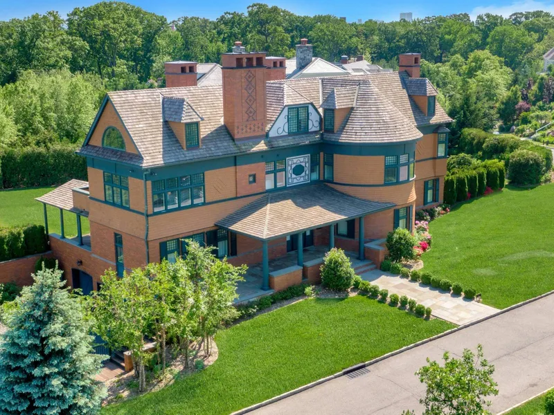 NEW LISTING VILLANOVA HEIGHTS Grand 7-Bd. Shingle-Style Mansion with Pool & Huge, Level, Grassy Grounds This picturesque 7-bedroom, 6.5-bath, 9,000-sq.-ft., American Shingle-style mansion was built in 2015. It enjoys exquisite details and luxurious amenities, including an inground swimming pool and a huge, level, grassy backyard. Set on close to an acre of land, the home sits along a leafy street in the exclusive, private community of Villanova Heights, adjacent to Riverdale's Fieldston Historic District. Designed by architect Hans Roegele, its distinctive exterior is based on a prominent Gilded Age mansion by the venerable firm of McKim, Mead & White - the 1884 Robert Goelet House, Ochre Point, in Newport, Rhode Island. The house features a welcoming center hall connecting to wide and inviting front and back porches; living room with and angled corner fireplace; formal dining room; large center-island kitchen with breakfast bar and stainless-steel appliances; semi-circular breakfast room; family room with fireplace; and library/guest room. The second floor has 4 en-suite bedrooms, including a master suite with a cathedral ceiling, its own sitting room, 2 walk-in closets, and a glass door to a private porch. The third floor has 3 additional bedrooms, a full bathroom and a large storage room. The finished basement includes a recreation room, exercise room, mudroom, and a maid's room with a full bathroom. Central HVAC. Elevator with access to all floors. There is a private cobbled driveway and an attached 3-car garage. The property totals approximately 0.88 acres. Conveniently located for well-known private schools (Horace Mann, Fieldston and Riverdale Country School), the vast greenery of Van Cortlandt Park, and transportation to Manhattan (including express buses and the No. 1 subway train).