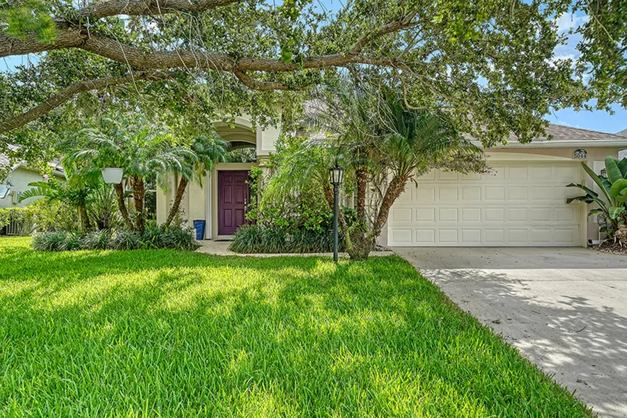 Welcome to 5044 Creekside Trail, in the desirable Carlyle community of Palm Aire. This beautifully updated three-bedroom plus den home on a private preserve lot with a tranquil creek running just beyond the backyard, offering serenity and privacy. Enter to discover an open and spacious floor plan filled with natural light and several updates. A newer roof (2020), HVAC system (2020), and energy-efficient solar panels (2020) keep monthly electric bills averaging just $30 a month. New carpets in both guest bedrooms (June 2025) and fresh interior painting—including walls, ceilings and baseboards (June 2025)—give the home a crisp, modern feel. Luxury laminate flooring flows throughout the main living areas. The kitchen features warm wood cabinetry, newer stainless steel appliances, and a casual dining nook, all open to the family room with sliding glass doors leading to an extended lanai—ideal for relaxing or entertaining family and guests. The primary suite, accessed through double doors, offers a spacious retreat with a walk-in closet and en-suite bath featuring dual sinks, a soaking tub and a separate walk-in shower. Enjoy working from home in the generous private den, thoughtfully enclosed by French doors for added privacy and a quiet, focused workspace. Other features include accordion rollout hurricane shutters on all exterior doors and windows, a fenced-in backyard, tray ceilings, lush tropical landscaping, including tall palms and mature vegetation, to complete the Florida lifestyle you've been dreaming of. Residents at Carlyle at The Villages of Palm-Aire enjoy low HOA fees, less than $90 per month, and no CDDs. Great amenities such as pickleball, tennis courts, a community pool, a playground, and option to join the Palm-Aire Country Club. Great location near UTC Mall, shopping, restaurants, Sarasota International Airport, and downtown Sarasota and the sugary beaches.