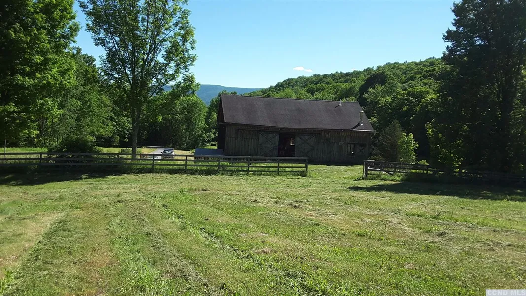 Beautiful Barn with living quarters, several spots for possible house site with extraordinary mountain views. There are 101.87 acres (currently under fores law). Partial wooded, several open meadows, with 2 streams. Road frontage off Etta Post Rd. with additional road frontage off Alpine View Rd.(200 ft) could be subdivided. The Barn has been well taken care of. There is a finished area with charming living quarters, consisting of 1 Bedroom, 1 Bath, 2 wood stoves, kitchen over looks large pond (12 ft. deep). There is a small deck off kitchen to enjoy the mountain air. This is presently considered a Support Farm harvesting Hay & Timber.