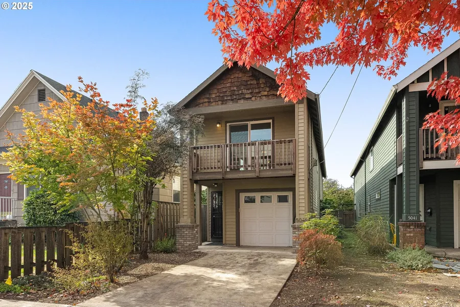 Move right into this immaculate Mt. Scott home. Smart layout has elevated main floor living. Vaulted living area features gas fireplace, skylights and sliding glass door to covered balcony. Kitchen includes dining area, breakfast bar, stainless steel appliances, gas range, lots of cabinet space plus a walk-in pantry. Primary suite has a full bath and walk-in closet. Lower level includes gallery entry, two additional bedrooms, full bathroom and laundry room, plus single car garage and off-street parking with EV charger. New carpet and fresh paint throughout. New water heater (2025), EV charger (2024), furnace (2023), washer and dryer (2024) and kitchen appliances (2020). Fully-fenced backyard with trees. Great location with a 99 walk score, 92 bike score and close to bus lines, shops, restaurants, Mt. Scott Park and Community Center. [Home Energy Score = 5. HES Report