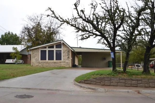 This home is a wood framed 3 bedroom, 2 bath home with a two car carport. It features a spacious living room with a stone accent wall and decorative windows as well as a sliding patio door. There is a freestanding wood burning fireplace located upon a brick corner unit. The living room is open to the dining room which features a built-in bookshelf. The kitchen is located next to the dining room and the three bedrooms are located down a long hallway with the master bedroom being located in the rear end of the home. The master bedroom features a private bathroom with his and her vanities, separated by a shower and toilet room. His and her closets are also located on each side. This home features a bonus room located under the carport that could be used as an office or a 4th bedroom.