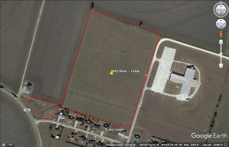 Perfect residential development tract. +-13 ac with water, sewer and electric available! Road frontage on 2 sides! Fronts along Dixie Street with access adjoining Harper Drive and FM 2268. Zoned R1A and allowing homes with 1,250 sq. ft. minimum.