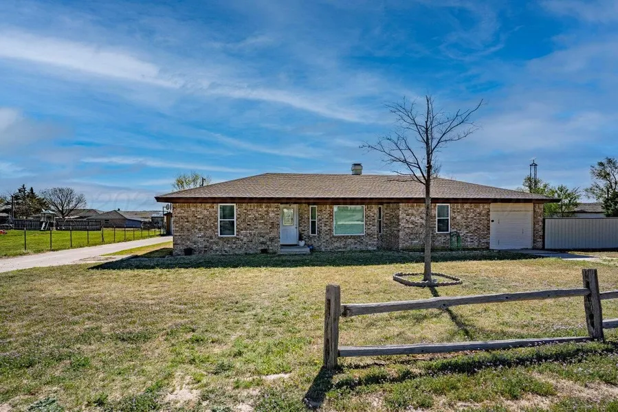 BUYER'S GAIN! Seller offering $5K concession! Near Lake Meredith, this charming brick home sits on approximately 0.65 acres outside the city limits of Fritch. The property features three bedrooms, two bathrooms, and an extra room that could serve as an office, a man cave, or an additional bedroom. As you enter, you'll be welcomed by a cozy wood-burning fireplace in the living room, laminate flooring, two bedrooms, and a bath on one side of the house and the master and bath on the other. The home also includes an oversized, detached one-car garage and a carport. The spacious, fenced backyard offers plenty of room for entertaining, while still allowing space for parking an RV or building your dream workshop. Rest easy knowing you have a brand new Septic System. Book your apt. today!