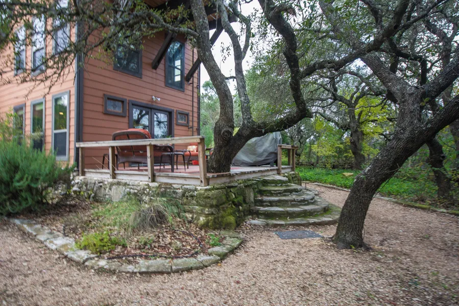 This Wimberley gentleman's ranch is located just north of the Blanco River, and features two ranch homes. This is an ideal situation, for a family compound, in-law plan, or to simply generate income with extra rent. Located in Deer Run Estates, there is also private nearby access to the Blanco River. The tract is very private, recessed and elevated from the road. There is quite a bit of cover, along with some massive oak trees. Both ranch homes are very similar in style, with hardwood floors and wood-beamed ceilings. The main residence has even more custom touches, along with wood wall finishes that give it a rustic and relaxing feel. There is also a great deal of outdoor living area. The main residence has a long covered porch, deck area that leads to swimming pool, and the guest home has a covered patio. The ranch is very manicured, with traditional fencing and a firepit. This is a great Hill Country property and very close to historic Wimberley, Texas.