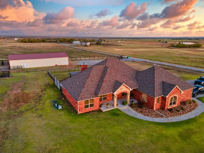 EQUINE PARADISE ON 20 ACRES!!! This beautiful 3 bed, 2 bath home in between Union City and Mustang, Oklahoma is a spacious slice of heaven just a few minutes South of I-40, giving it quick access to El Reno, Mustang, Yukon, and Downtown OKC. Features include: Geothermal heating and cooling, tons of storage, gorgeous natural wood trim throughout, a large owner's suite with walk-in closet that connects to the laundry room and an attached saferoom, security cameras, and whole-home Generac generator. This 20 acre horse ranch is ideally setup to pamper several horses and features a 40'x70' barn with 5 stalls with feeders and runs, a horse wash, hay storage, tack room, attached bathroom with washer and dryer, and an equipment storage area along with double 12' overhead doors and an automatic fly spray system. The property is fully cross fenced along with (3) - 12'x16' lean-to sheds, (1) - 12'x20' lean-to shed, and a 120' x 120' riding arena. This property is a must see! Call today to setup your private showing!