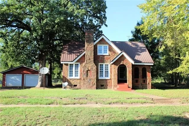 Step into timeless elegance with this beautifully crafted 3-bedroom, 2-bath native Oklahoma rock home with a detached two-car garage. On a spacious lot, this property blends rustic charm with modern comfort. The exterior showcases locally sourced stonework, giving the home a warm, earthy character that stands out in any neighborhood. As you approach, you're greeted by a welcoming front porch framed with a graceful stone archway—perfect for morning coffee or evening relaxation. Inside, you will find it completely remodeled in 2024 with a wood-burning fireplace and natural light that pours through well-placed windows. The kitchen offers new appliances and butcher block counters, ideal for both everyday meals and entertaining. Each bedroom is generously sized, with the primary suite having a private bath. The second bathroom is tastefully designed with updated fixtures that complement the home. A partially finished upstairs that doubles the square footage of the home. This expansive bonus area is brimming with potential—whether you envision a whimsical child’s bedroom, a peaceful reading nook, or a lively game room, the space is yours to shape. And don’t forget the basement, which adds even more usable space. Whether you envision a home gym, workshop, storage haven, or future expansion, this lower level gives you the flexibility to grow. Whether you're looking for a peaceful retreat or a unique family home, this native rock beauty delivers character, comfort, and Oklahoma heritage in every detail. Call today for a tour.