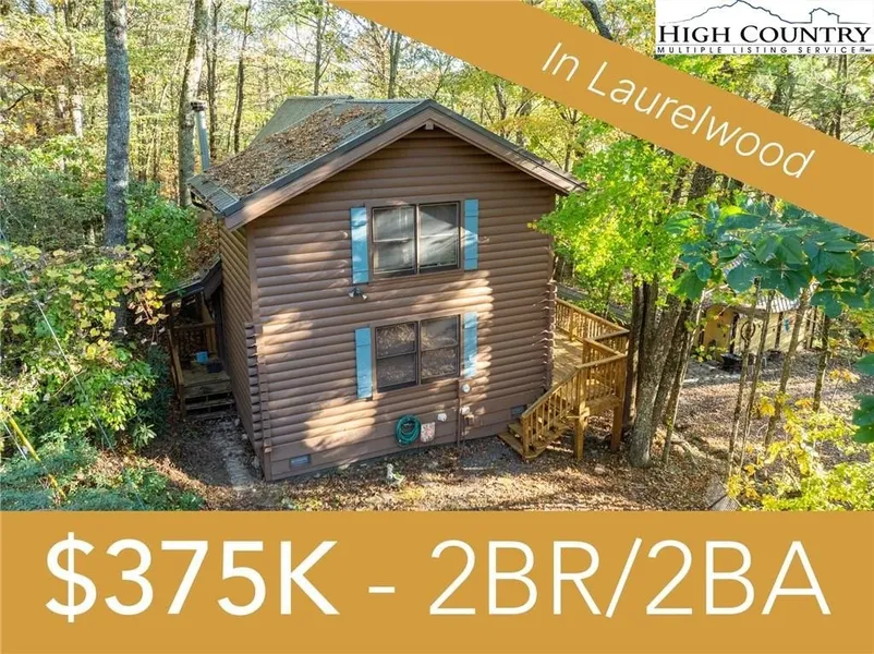 Beautiful 2BR/2BA rustic log cabin in Laurelwood. This cabin is located 6 miles (13 min) from Boone! Laurelwood is a well maintained community and quiet community - rentals are prohibited, ensuring a peaceful setting for all. The cabin has vaulted ceilings with a bedroom and bath on each level. Beautiful wood throughout the log cabin. Outside there is a wrap around porch (half open, half covered) so you can enjoy the outdoors all year round. Cabin and deck was stained in Sep/Oct 2024! Once you take a look at this cabin you'll recognize the quality. Come take a look today before it's sold!