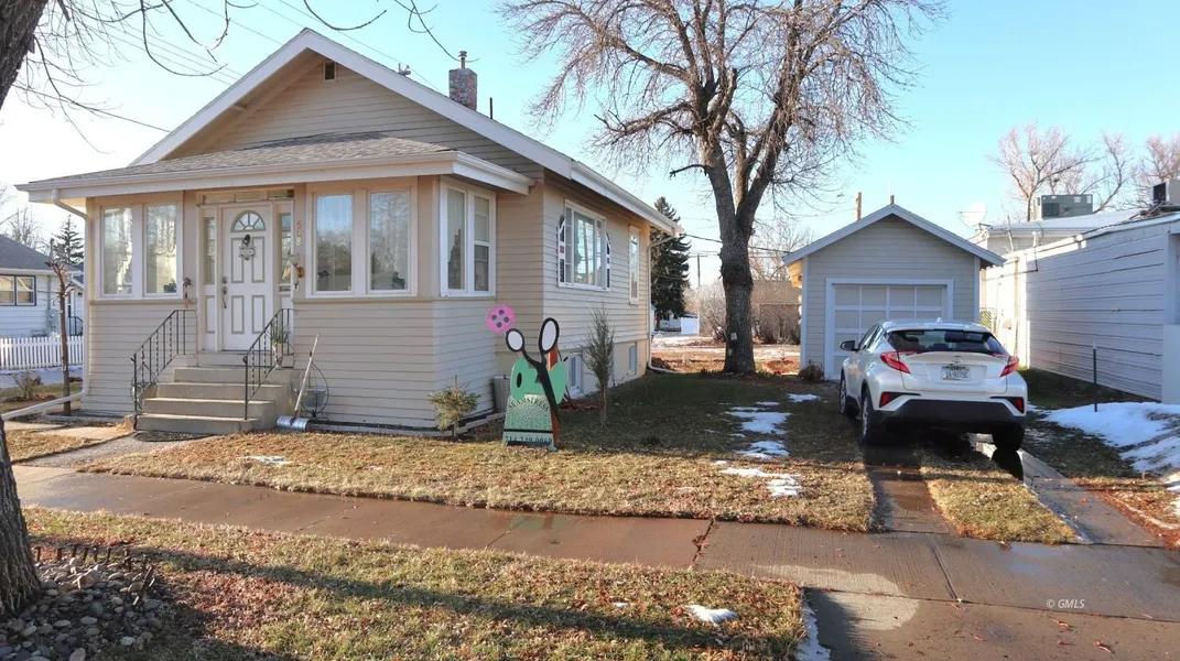 Cozy, well-maintained home with flexible living space! This 1,248 sq ft property (624 up / 624 down) sits on a 3,600 sq ft lot and offers comfortable living with room to grow. The main level features the living room, an enclosed front porch/sunroom, a bedroom, kitchen, and a 3/4 bathroom. The lower level includes a second bedroom, an open area ideal for a family room or recreation space, and the laundry and utility area with a newer furnace. There is also potential to create a third bedroom in the basement if desired. Outside, you'll find a single detached garage and a manageable yard. This home has been well cared for and offers a warm, inviting feel-perfect for anyone looking for a cozy home with versatile space and future possibilities.