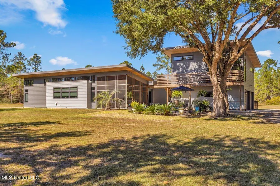 Custom Architectural Home with Breathtaking Design on 4.49 Acres Discover your private retreat just 7 miles from I-10! The main home offers 1,883 sq. ft. with a two-car garage (washer and dryer hookups included), plus a 556 sq. ft. carriage house above-complete with a full kitchen, bedroom and bath, ideal for guests, a VRBO rental, or investment opportunity. This stunning custom-built home masterfully blends modern craftsmanship with natural beauty-designed to bring the outdoors in. Featuring casement ventilation windows, 6-inch exterior walls with open-cell foam insulation, and Cypress tongue-and-groove wood ceilings throughout, every detail showcases thoughtful design and efficiency. Step inside to find elegant porcelain tile flooring, smooth, clear-coated custom cabinetry, and an impressive 4x8 kitchen island-the perfect centerpiece for cooking and entertaining. The open-concept layout flows seamlessly to a 12x12 screened lanai, offering peaceful views and a perfect space to unwind. Relax by the mezzo propane gas see-through fireplace or retreat to a separate living area for quiet comfort., 22K Generac generator, and 500-gallon underground propane tank ensure comfort and peace of mind year-round. Outside, enjoy 4.49 serene acres with approximately 3/4-acre contour pond and three versatile outbuildings, all with concrete floors: Building One: 18x61 covered motorhome site with 50-amp hookup, 20-ft floor drain, water, electric, and a 550-gallon septic tank. Building Two: 12x30 enclosed drive-through with front and rear roll-up doors. Building Three: 14x30 covered carport. This peaceful, one-of-a-kind property offers both luxury and functionality-perfect for nature lovers, entertainers, or anyone seeking tranquility with convenient access to the coast. Located just 30 minutes from Old Town Bay St. Louis and one hour from Downtown New Orleans. Find your Zen-schedule a private tour today!