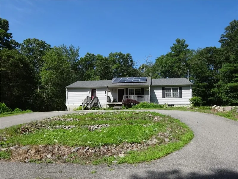 Very Nice 3 Bed, 2.5 Bath, 1,736sqft. Vinyl Sided Ranch for one level living on 13 private acres. The home is set back from the road with a circular driveway & a large side and rear yard. For those that have dogs, there is a good section of the yard that has an electric fence which stays with the property. Good size eat in Kitchen with Stainless Appliances including a gourmet chef's gas stove/oven and a large walk-in pantry closet with an organized storage system. Hardwood Floors throughout and a Master Suite with a walk-in closet and a full bath with Jacuzzi Tub. On the other side of the home, there is a half bath, 2 more bedrooms, a den or office area, another full bath with a spacious walk-in shower and off the hallway is a laundry room w/ the washer & dryer which stay. The basement offers plenty of storage space and has a wood burning stove for supplemental heating. The high ceilings would allow to finish and add more living space, especially since there is a walk out to the rear yard. The hot water is supplied by a new on-demand Navien unit. The roof is only 2 years old and new Solar Panels were installed last year(seller to pay off at closing) to significantly minimize the electric bill & also provide the potential for credits from National Grid. There are also sliders off the kitchen onto a large deck overlooking the backyard and a storage shed. If you are hoping to live close to nature on a large lot and a move in condition one level home, this is a must see!
