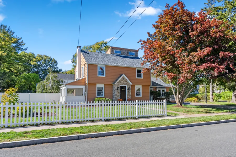 Perfectly located on a beautiful corner lot within walking distance to West Hartford Center, this stunning 4-bedroom, 2.5-bath center hall Colonial offers over 2,300 sq. ft. of stylish, move-in-ready living space with a long list of recent upgrades. Step inside to find a freshly painted interior with refinished hardwood floors, new ceilings, and updated recessed lighting throughout. The formal living room features a wood-burning fireplace for cozy winter nights, while the charming screened-in side porch and multiple new patio areas create the perfect spots for relaxing or entertaining outdoors. The open kitchen is filled with natural light from a large bay window and skylight, offering stainless steel appliances, a breakfast bar, and easy flow into the spacious family room. The formal dining room features classic architectural charm. Upstairs, the primary suite includes an ensuite bath, with two additional bedrooms on the second floor and a private third-floor bedroom with a vaulted ceiling and walk-in closet. The partially finished lower level provides flexible space ideal for a rec room, gym, or home office. Recent improvements include a new roof, new windows, new front door, new fencing, upgraded landscaping, a new back patio, and a complete exterior paint job. A new 6-zone mini-split AC system ensures year-round comfort. This one won't last!