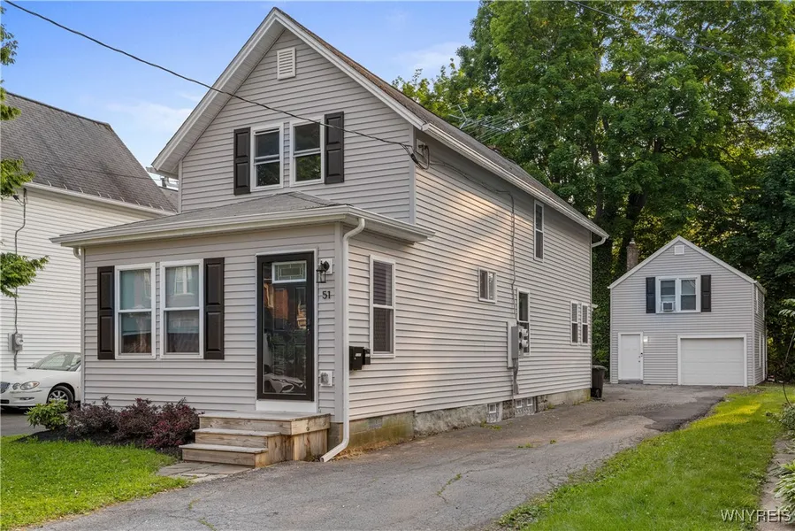 Welcome to this beautiful completely updated home situated in the heart of the charming and quaint village of Hamburg. Lovely entry foyer leads you into this adorable home. Upscale laminate floors throughout. Gorgeous white kitchen with new cabinets,countertop,flooring. Sunny eat-in area in kitchen perfect for cozy meals or morning coffee. Formal dining room off living room for all your entertaining. Mud room off kitchen whch could be a den ,sitting area,etc. Convenient first floor laundry and half bath. Both bathrooms are completely updated. Lovely master bedroom upstairs in back for peace and quiet. Beautiful trending colors throughout. New windows,siding doors furnace and electrical. Brand new top of the line carpet in the bedrooms. Cozy garage apartment with one bedroom and also completely updated. Wonderful tenants are on a month to month. Rent is 1095 and that includes utilities. Garage apartment comes with stove,refrigerator,washer and dryer as well. This is an awesome home that was done in a meticulous manner and shows pride of ownership. Just move in and enjoy this warm home with rental income to help pay your mortgage! House can be shown at anytime but 24 hour notice for garage apartment would be appreciated. Please also refer to Ml# B1613407 Garage apt square footage is approximately 510 square feet.