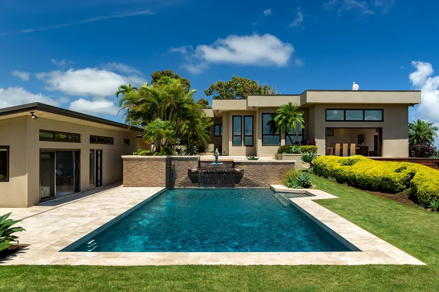Own your own piece of Hawaii with this 51-acre estate. Up on a bluff a half mile from the ocean, Hale Wainui has panoramic 260-degree views of the ocean from Molokai to Haleakala with the emerald green West Maui Mountains as a backdrop to this mostly flat 51-acre estate. Words and pictures barely do justice when it comes to this private paradise. Come, stay, alone or with family or friends. Entertain or hunker down in total privacy in this retreat featuring a recent multi-million-dollar floor to ceiling remodel with fabulous, imported travertine flooring, koa kitchen cabinets, Sub-Zero & Wolf appliances, a new pool house and heated pool, bonus studio room, 3 car garage, beautiful natural stained Ipe decks and a Sonos home sound system. Efficient upgrades include an owned 62-panel photovoltaic system, split ACs, LED lighting, and a 600 AMP electrical system ready for future expansion. Enjoy tranquility and freedom with no HOA or CC&R's at this exclusive, rare island retreat.