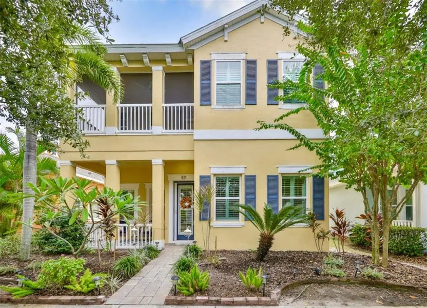 Welcome to this stunning coastal inspired home nestled in the highly sought after community of MiraBay. HOA includes yard maintenance. This beautifully maintained residence offers 4 bedrooms, 3 bathrooms, 2,592 square feet, and a 3-car garage, along with an inviting open front porch and a screened rear lanai overlooking a fenced yard. New roof in 2025. Step inside to discover an open-concept floor plan filled with natural light, high ceilings, rich wood floors, and elegant designer finishes throughout. The gourmet kitchen is a chef's delight, featuring granite countertops, stainless steel appliances, a spacious island, and ample cabinetry perfect for both everyday living and entertaining. The primary suite, conveniently located on the first floor, offers a serene retreat with a luxurious en-suite bathroom and a walk-in closet. Also on the first floor is an additional bedroom, a full guest bath, and a laundry room for added convenience. Upstairs, you'll find a versatile loft with its own screened balcony, two spacious bedrooms, and a full guest bathroom. This thoughtfully designed home seamlessly combines comfort, functionality, and coastal elegance ready for you to move in and start living the Florida lifestyle. As a resident of MiraBay, you'll enjoy world-class amenities including a waterfront clubhouse caf, resort-style pool, free use of kayaks, canoes, and paddleboards, gym with fitness classes, pickleball and tennis courts, basketball courts, multiple playgrounds, and more. This home is conveniently located just minutes from E. G. Simmons Park, Apollo Beach Nature Preserve, marinas, and waterfront dining with easy access to shopping, beaches, sports complexes, MacDill AFB, I-75, US 41, I-4, US 301, the Selmon Expressway, St Petersburg, Downtown Tampa, and only about 27 miles to Tampa International Airport. This is more than a home, it's a lifestyle! Call today to schedule your private tour.