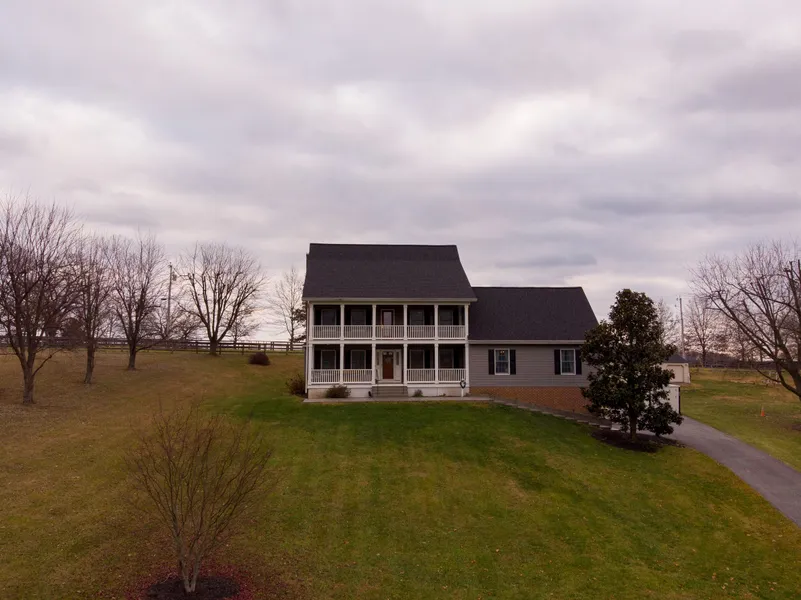 You know the house just past the circle in Hampstead going towards Hunt Valley; this is it! This beautifully grand two-story home with a second-story balcony offers the best curb appeal in the county. The spectacular view of the gently rolling farmland and a horse farm to the rear doesn't get any better. There is newer siding, roof, front and rear exterior doors, and newer amenities in the home, too. Master bath(s) are updated with ceramic floors, walk-in showers, gorgeous cabinets with granite tops, and walk-in closets. There are newe r cherry custom cabinets in the kitchen, granite tops, a breakfast island, and a large pantry. A floor plan that is easy and sensible with the family room with a gas fireplace and access to the rear patio that sits right off the kitchen. The first floor laundry is central in the home. The lower level offers more living space with a game room and easy access to an extra-large two-car garage. Nice yard space with a shed and only 15 minutes to Hunt Valley. More perks include a whole house generator, radon system, and neutralizer. This property may work for many different needs. The fifth bedroom is part of the in-law quarters with a private entrance and offers a second kitchen and bath.