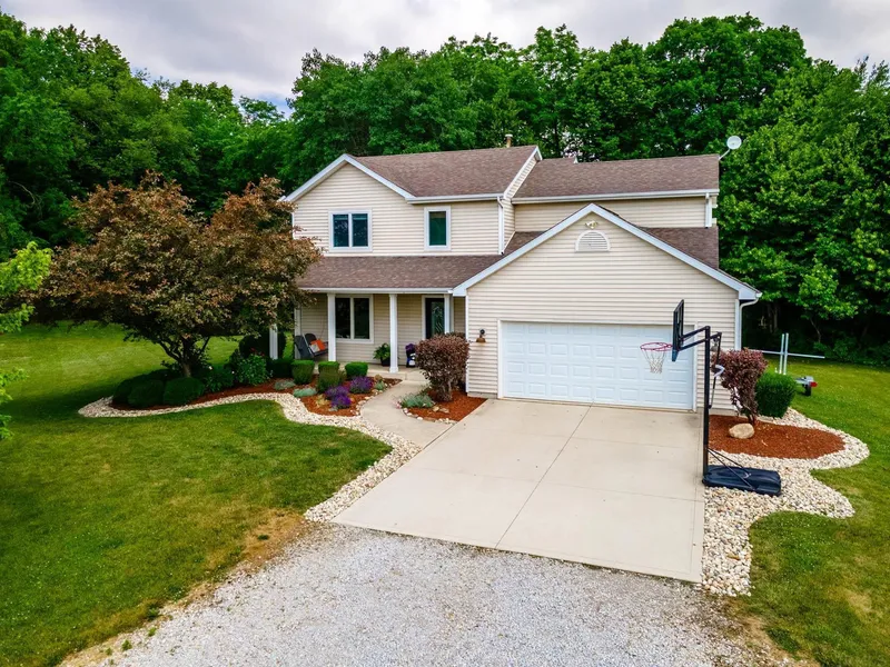 *OPEN HOUSE JULY 29th & 30TH, SATURDAY 2-4 & SUNDAY 1-3* This custom built Delagrange home is nestled on 5.15 acres with the most stunning, wooded backdrop. This secluded oasis features professional landscaping, trails with black raspberry bushes, raised garden beds, an acre of woods with sledding hills, and a custom built tree deck from which to admire the gorgeous views! Not to be outdone by the property it sits upon, this abode boasts stunning architecture in the vaulted great room with an angled ceiling, gas log fireplace, and trapezoid windows. Other desirable features include Aristokraft staggered cabinets, 6 panel solid core Masonite doors throughout, spray foam insulation, extra wide windows, main level laundry room with deep sink, huge owner?s suite, mud room conveniently located off of the garage, top of the line Andersen windows, fully floored attic, and ample storage throughout. The daylight basement was tastefully finished 2 years ago with vinyl plank flooring, can lighting, barn doors to camouflage the utility room/under stair storage area, central air and well/well tank were replaced 4 years ago, kitchen cabinets were painted, and the thermostats were also recently replaced. This home is perfectly finished off with a beautiful screened in porch with cathedral ceiling and incredible views in any direction you look.