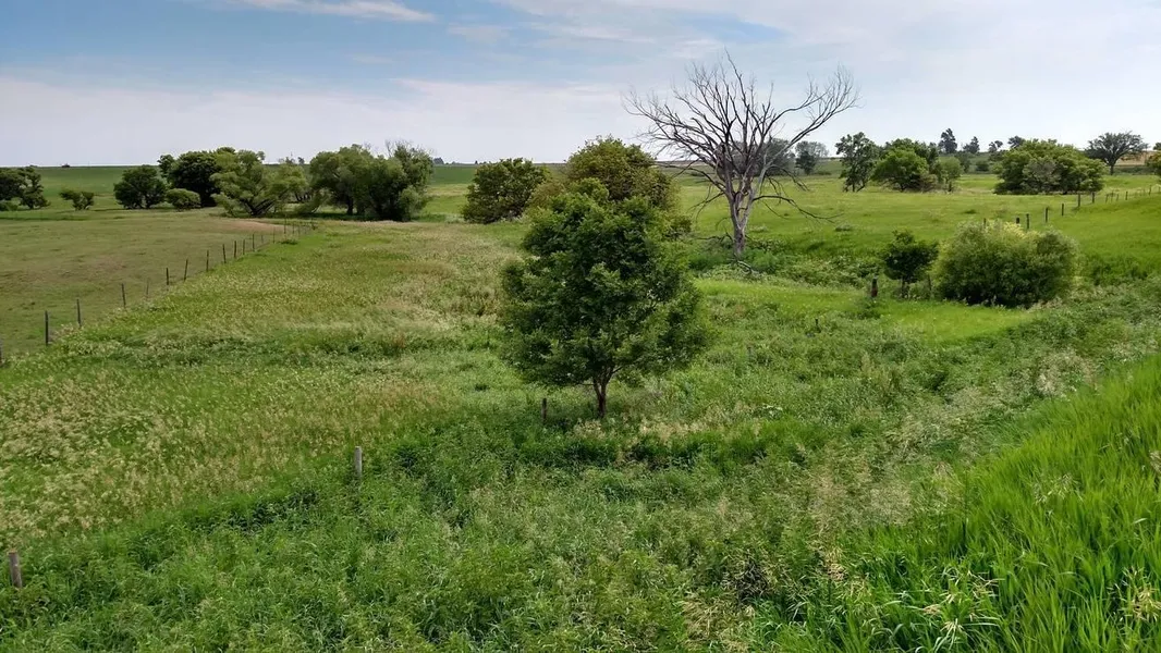 Parcel 2: 318 taxed acres. Located 1.5 miles north of Farnam on county road 408 Drive. Property consists of fenced hardland rangeland with an older building site that is considered uninhabitable in the southeastern corner of the property. There is county road along the east and north boundaries. Stock water provided by a stock well at building site and 2 stock dams. There is a fenced out area in the south where a gas pipeline crosses the property. This area is also being grazed. Seller: Phyllis Reynolds