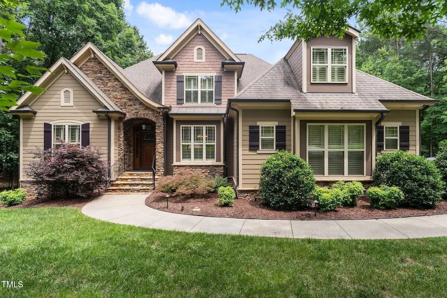 Tucked away on 1.33 acres of wooded privacy in the coveted Fieldstone West subdivision where every home is custom and there's no HOA. Here you'll find true craftsmanship with 4 bedrooms, 2.5 bathrooms, and 2,791 square feet of meticulously maintained living space. A grand two-story foyer introduces the home's refined interior, where site-finished hardwoods, arched thresholds, extensive millwork, new plantation shutters and custom lighting add warmth and character throughout. The vaulted living room, anchored by a gas fireplace with a custom stone surround and Palladian-style windows, flows seamlessly into the gourmet kitchen complete with granite countertops, stainless steel appliances, custom cabinetry, and a striking tile backsplash. The first-floor primary suite is a true retreat, featuring a tray ceiling, custom closet, and a luxurious spa-style bath with a soaking tub, oversized walk-in shower, and dual vanities. Upstairs, two generously sized bedrooms share a beautifully appointed full bath, while a spacious bonus room with a closet offers the flexibility of a fourth bedroom, media room, or home office. A partially finished walk-in attic, currently outfitted as an office or hobby space with dual closets, offers additional versatility. The screened porch with stained beadboard ceiling, recessed lighting, and TV setup opens to a grilling deck and a professionally landscaped backyard surrounded by mature trees. Thoughtful exterior upgrades include added lighting that enhances the home's curb appeal and evening ambiance. Designed for effortless living, the home includes a 3-car garage, RV/boat parking, irrigation system, sealed crawlspace, tankless water heater, water softener, and energy-efficient systems throughout. Move-in ready and lovingly cared for by its original owners, this rare property is a standout offering in one of Wake Forest's most sought-after neighborhoods.