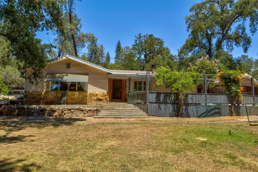 This quaint ranch-style home is nestled on 36+ acres right in the mountains among the mature oaks where you can see the history of what once was, the land of the Miwok Village and later, the heart of the gold rush. From the Indian grinding rock to the mine shaft your neighborhood feels like a vacation home but is only 6 miles from the Elementary school, High School, & Hospital. With Willow Creek running through the property, this natural home features many custom oak cabinets throughout, granite countertops, double oven, appliances less than 5 years old, fast internet, solar, and large front deck. Walk out this deck to the cabin (currently rented as a VRBO), movie theater with pavilion including hot and cold water, projector room, above ground pool, and garden area. This ranch was featured on America's Heartland which is available to be viewed at www.AmericasHeartland.org Episode 1109. Hike up the back of the property to the open area at the top of the hill and enjoy the view.