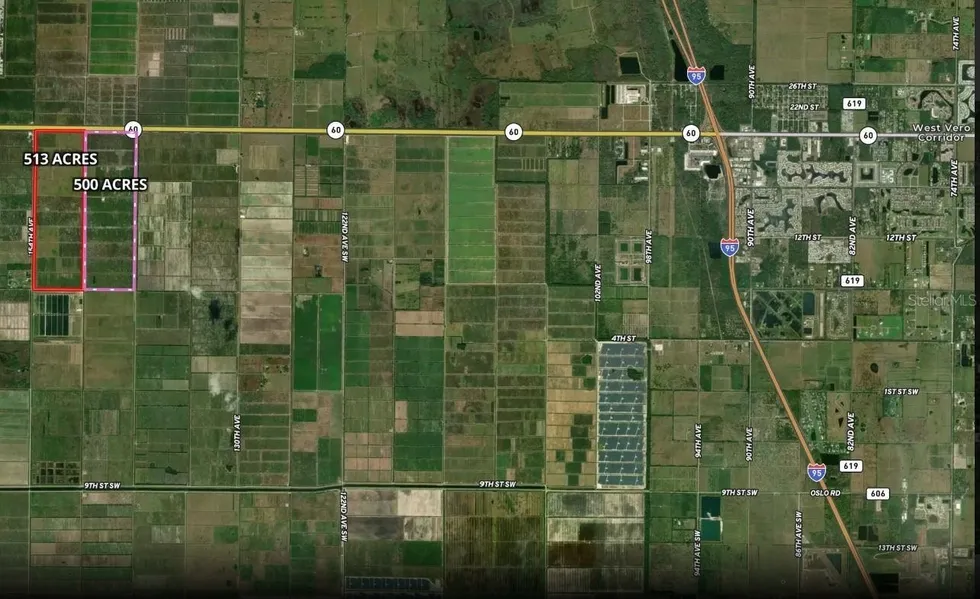 Discover a rare investment opportunity with two expansive 500-acre parcels located in Vero Beach, Florida. These properties boast a remarkable one-mile frontage on the highly traveled State Highway 60 at the intersection of 154th Avenue, providing outstanding visibility and accessibility. The west side of the combined parcels features an impressive 1.5-mile frontage along paved 154th Avenue, offering multiple points of entry and enhancing the land’s future development potential.