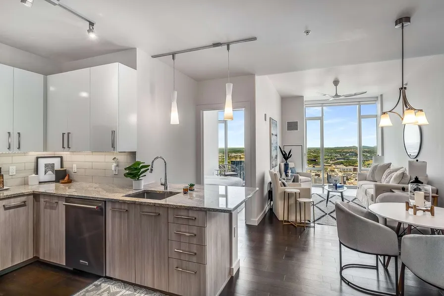 Located in the prestigious 505, this striking 40th-floor home offers comfort, indulgence, and captivating views over the heart of downtown Nashville, accompanied by coveted building amenities. Marvel as the lights of Broadway, the Batman building, the Cumberland River, and the rolling hills beyond the city become the backdrop to your extraordinary life. Entertain in style with an easy flow between the kitchen island, adjacent dining area, and living room. The spacious kitchen w/gas range offers plentiful storage & prep space for the home chef. With floor-to-ceiling windows, you’ll enjoy bountiful natural light & stunning vistas day & night – begin by sipping your coffee in the cozy bedroom seating nook and unwind with the enchantment of twinkling city lights in the evening. From the elegant lobby & 24/7 concierge to the engaging outdoor spaces, owners’ lounges, & state-of-the-art fitness, your sophisticated urban lifestyle begins here, just blocks from world-class restaurants & vibrant entertainment.