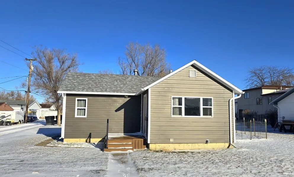 Welcome to this move-in ready 1-bedroom, 1-bath home offering 644 sq ft of thoughtfully updated living space in Glendive, MT. The interior has been completely refreshed with new flooring and interior doors throughout, all new windows, new countertops, fresh interior paint, a new roof, tankless water heater, and a brand-new bathtub and toilet. The bedroom is generously sized with ample closet space, and the washer and dryer stay with the property, along with the kitchen appliances. The exterior features brand-new vinyl siding and maintenance-free decks at both the front and rear of the home. Major utility upgrades have also been completed, including a new service main, new meter, and a new 200-amp electrical panel. Situated on a 5,000 sq ft corner lot with alley access, the property also includes a shed for additional storage. This charming home is an excellent opportunity to own for less than rent or add a solid investment property to your portfolio.