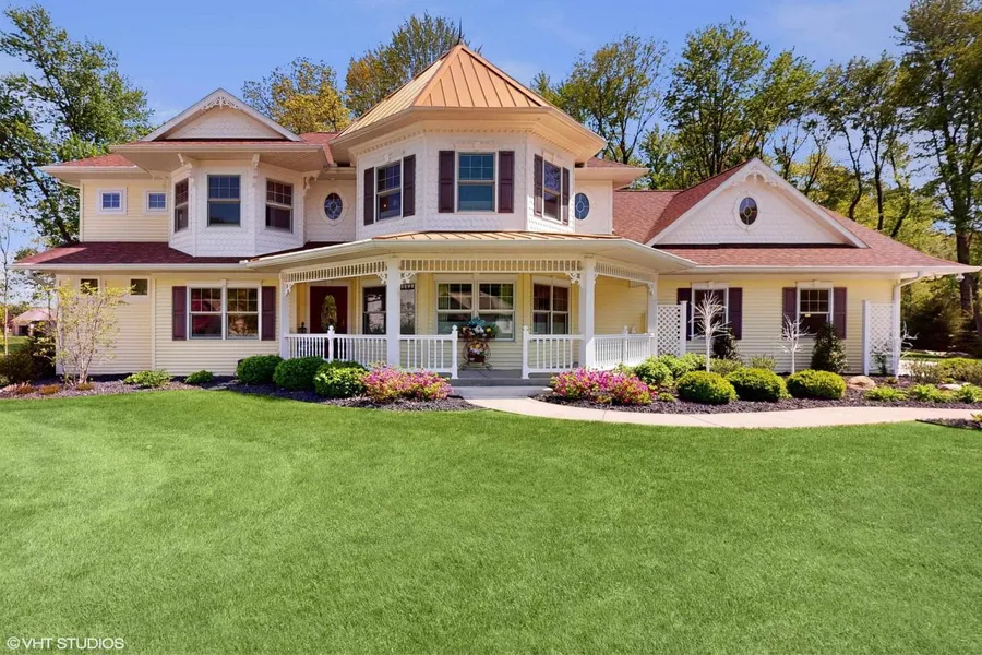 Executive living at its finest! This custom built Victorian home uniquely built by Yoder builders. This 7,000 plus Estate is nestled into a tranquil setting. Upon entering the front door you will be dazzled by the custom features throughout the home. No expense has been spared on the amenitys in this estate. Including premier grade granite countertops, Hoosier house Cherry cabinetry with custom design drawers. Walk in Pantry, eat in kitchen, formal dining room. Acacia hardwood flooring, crown molding. Exquisite light fixtures, surround sound throughout the estate, unique fixtures. High ceilings throughout the rooms. With over 20 foot ceiling in great room boast a massive one of a kind floor to ceiling stone gas fire place. 6 speed lighted remotely. Mother in law suite on main level with full size bathroom and a attached private screened in porch. Main level laundry. Primary suite is located on main level with 2 walk in closets, complete marble shower, and soaking tub . Upstairs you will be impressed as you walk on the catwalk overlooking the great room. You will find 2 impressive large high ceiling rooms, a craft room and a storage room. Lower level fully finished is a hosting hotspot for entertaining complete with a wet-bar and a media area. Lower level bedroom has a full bathroom with jetted soaking tub. Fully encased concrete safe room vented and climate controlled .There is over 2,000 square foot of storage throughout the home. Estate has smart home features including security monitored video surveillance and phone app available. End your stressful day in the 3 seasoned back patio room overlooking beautiful oak trees and newly planted fruit trees of pear, apple and cherry. 3 car insulated garage has 220 electricity for electric vehicle hook up