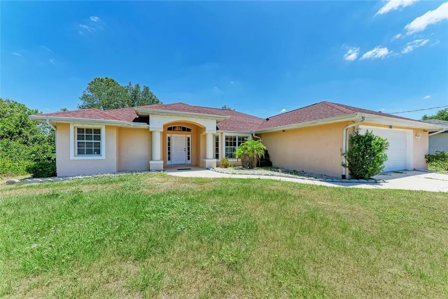 PRICE IMPROVEMENT! Welcome to your dream home—where comfort meets custom craftsmanship at every turn. This beautifully upgraded 3-bedroom, 2-bathroom home offers a spacious open floor plan, soaring ceilings, and countless unique touches that truly set it apart. As you enter, you're welcomed by striking 24x24 marble-look tile flooring and a custom-designed breezeway with intricate tile work that immediately showcases the home’s quality and character. The living room features dramatic, soaring ceilings that create a grand and open atmosphere, making it the perfect space to relax or entertain in style. The large walkthrough kitchen is a chef’s delight with ample counter space and seamless flow into the main living areas. The theater room—complete with an LED fireplace and a professional video/speaker system AND movie furniture that conveys with the home —doubles as the ultimate family hangout or movie night retreat. Both the theater room and the primary bedroom feature stunning coffered ceilings, adding an upscale, custom feel. All bedrooms include luxury vinyl flooring and spacious walk-in closets. The primary suite is a relaxing retreat, featuring a spa-like en-suite with a large walk-in shower adorned with floor-to-ceiling tile. The thoughtful split-bedroom layout ensures privacy for guests or family. Step out back to your oversized screened-in lanai and backyard—perfect for outdoor dining, entertaining, or simply enjoying Florida’s sunshine and serenity. This home is not only gorgeous but also updated for peace of mind, with a brand-new roof (2024), complete HVAC system (2020), new water heater (2023), and a whole-home water system. Every room is filled with custom design elements and subtle upgrades that make this home truly one-of-a-kind. A 2-car garage and hurricane shutters add convenience and security. Security system throughout the home will also convey. This isn’t just a home—it’s a lifestyle of comfort, elegance, and everyday luxury. Why wait for new construction and the challenges that go with it? Move in ready waiting for the next owner!