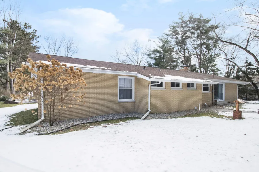 Want the country feel but close to everything? This Unique style all brick ranch is waiting for you, updates you will love, overflowing with natural light, Vaulted ceilings, new white kitchen, stainless steel appliances, breakfast bar, updated bathrooms, freshly painted, gas fireplace, new flooring, large master with 1/2 bath, full basement, provides plenty of storage. Lot size 1.7 acres, plenty of room to build your pole barn/outbuilding, Mechanical updated, water heater 2020, septic 2019, well 2019.