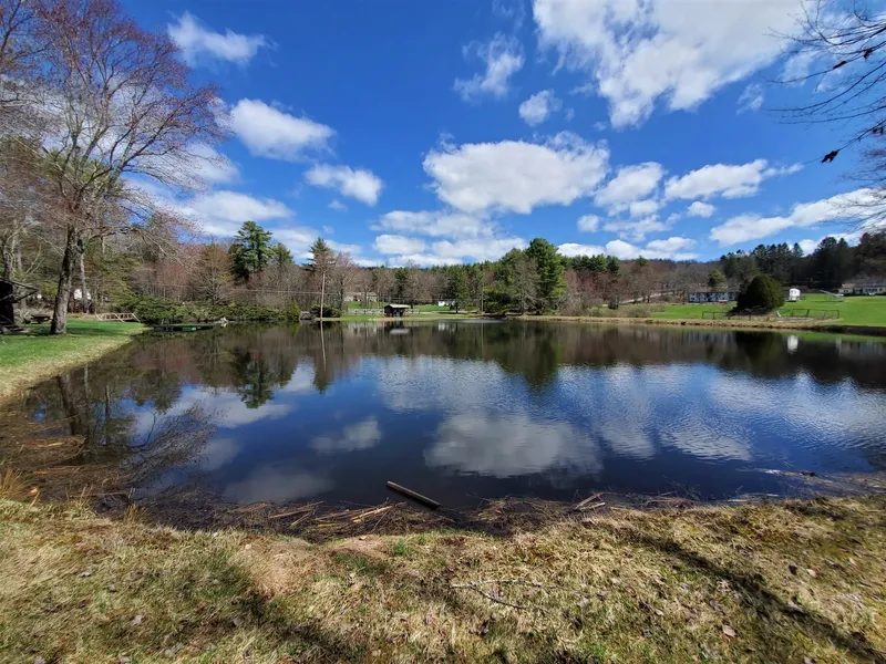 On Golden Pond. For 67 years one family has made a lifetime of memories on this unique property. Consists of 3 lots with a total of about 20 acres.The gem is the 1.34 acre spring fed pond, which has hosted large family gatherings for years. Parking for 25 to 30 cars, commercial sized bbq, pavillion with 5 picnis tables, outdoor sink,refrigerator, bathroom and shower. ( think glamping Air BNB). Has its own septic tank. Use to be a few campers there, possibly replacing them. Fishing, swimming, floating dock. Just beautiful. Pond and large outbuilding on 10 acres, so additional home can be built. Ranch home on separate lot with 4 bedrooms, solar panels for electric, built by owner for quality. Needs updating but worth the effort. Comes with 2 car/truck shed for storage. Lot 3 is a buildable wooded lot, keep for privacy, build for family member. This is once in lifetime opportunity for a family to make memories for years. Or someone that wants to farm, 4 acres are cleared. Endless opportunities. additional contiguous 27 acres available with loads of road frontage. see MLS #6083111. Buy both and get a 10% discount.