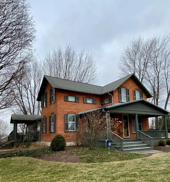 Character filled country brick home with original hardwood floors, great yard and deck to watch amazing sunsets. New Boiler, water softener, control board panel for dishwasher, garbage disposal, updated main bath, thermostats, painted kitchen, living & dining rooms-2020. Painted exterior, new front steps & side railings-2019. Kitchen features custom cherry cabinets, soapstone counters, island with prep sink, Viking gas stove & farmhouse sink. First floor office has a gas propane fireplace (never used by seller), built in shelving & door to rear deck. Stackable laundry could be placed in the hall closet. 2 bedrooms & an additional room all with closets & natural wood floors upstairs. The office could also be a bedroom, formal living & dining rooms, kitchen open to the family room & another bedroom along with the baths are on the main level. Wonderful deck for relaxing, 1 car detached garage with opener, 2 story barns can be used for workshop or storage all on just over 3 acres of land.
