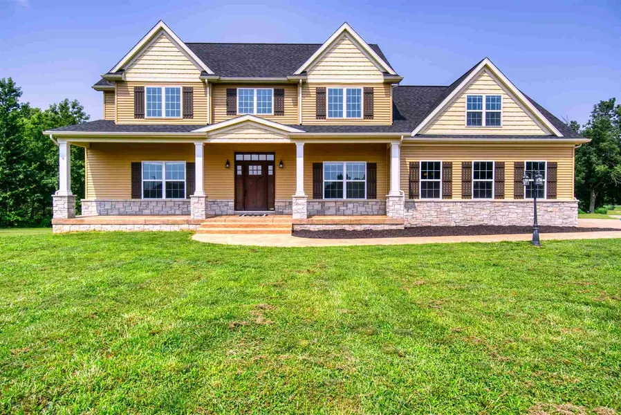 Beautiful LIKE NEW home situated on 5 acres! Completed in 2017, you will fall in love with the hardwood floors, open floor plan, and the lake view! The front porch makes a welcoming first impression to all who enter the home. The two story foyer entry sets the tone for what's within. Off of the foyer is a spacious office with chair railing. The living room offers crown molding and built in entertainment center which will be a great spot to relax with the family. The kitchen will win you over with granite counter tops, stainless steel appliances, walk-in pantry, breakfast bar, and a breakfast nook that leads out to the deck which overlooks the shared lake! To finish the main level is a full bath with walk-in shower and a laundry room with a utility sink, cabinets, and hanging rack. Upstairs features the master suite and 3 additional spacious bedrooms. Master bath offers walk-in tiled shower, double raised height vanity, linen closet, and a large walk-in closet! There is another full bath in the hall and one in the 4th bedroom/bonus room. The walkout basement features a HUGE rec room/family room area and a kitchenette. Walking out to the backyard you're greeted by a large covered patio and plenty of room to build a fire pit to enjoy on cool evenings. Per owner professionally painted throughout 7/2021, and new blinds added throughout the home.
