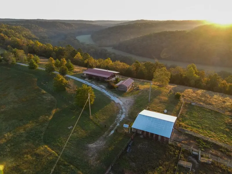 Tucked away in the heart of the Ozarks, lies the Quick Creek Ranch. This property encompasses all the natural beauty that the Ozarks have to offer. These 52 +/- acres boast incredible views, excellent pasture, and beautiful timber. While watching the sunrise off of the back porch of the 2,880 square foot home, it is likely that you may see wild turkey, bald eagles, deer, and other wildlife around the landscape.