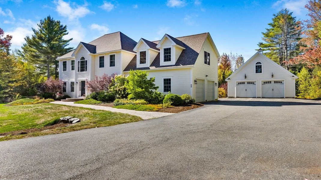 Hampden Showstopper! This stunning 4-bedroom, 2.5-bath colonial offers over 3,000 sq. ft. of beautifully maintained living space on 2.2 private acres in a highly desirable Hampden subdivision. Step inside to a bright, welcoming foyer that opens to a formal living room with a stone mantel and pellet stove, a formal dining room, and a versatile office space. The modern kitchen features granite countertops, stainless steel appliances, ample cabinetry, and a tile backsplash. Gorgeous hardwood floors flow throughout the home. The second floor includes a spacious primary suite with a soaking tub and walk-in tile shower. The fourth bedroom offers flexibility and can easily serve as a second-floor family room. Outside, enjoy a true backyard oasis with beautiful landscaping, luxurious pool, a relaxing deck space with custom awning, a firepit area, a large outbuilding for extra storage, and even a charming treehouse. Car enthusiasts or hobbyists will love the attached 2-car garage plus a detached 2-car garage with storage above. Additional features include a whole-house on-demand generator, new propane boiler (2023), and two heat pumps for year-round comfort. Conveniently located near Hampden schools and town amenities, this home checks all the boxes and is truly a must-see!