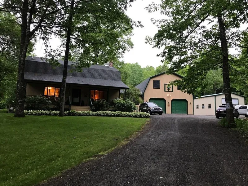 This Gambrel style home has it all. Very well landscaped with pond out back and direct access to snowmobile and ATV trails. Huge family room over heated garage. Home has 3 BR upstairs with a extra room on first floor that could be a 4th BR. Safe Tub in downstairs bathroom. Two pellet stoves, one in LR and one in basement. Hot Tub room in basement. Anderson windows and corian countertops. A very peaceful area to sit and relax on the porch or by the pond. All kinds of enclosed space to park your toys.