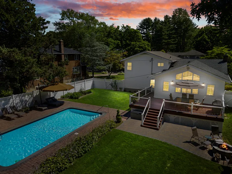 Spectacular expanded split in Move In condition. A decorator's delight with remodeled chef's top of the line dream kitchen, gas/electric oven & french door refrigerator, New master bath with granite counters & two sinks, All new windows, sliding door & front door, New roof & skylights, built in closet system throughout, Two new central AC units, water/max whole house water conditioning and softener system, additional reverse osmosis in kitchen.,all to be enjoyed on your newly transformed backyard oasis including, new deck, new patio, new firepit, new fencing-property completely fenced, newly resurfaced gunite saltwater pool, new heater, bluestone coping surround large patio area all nestled on 1/2 acre property, in midblock location of desirable Roxbury area.