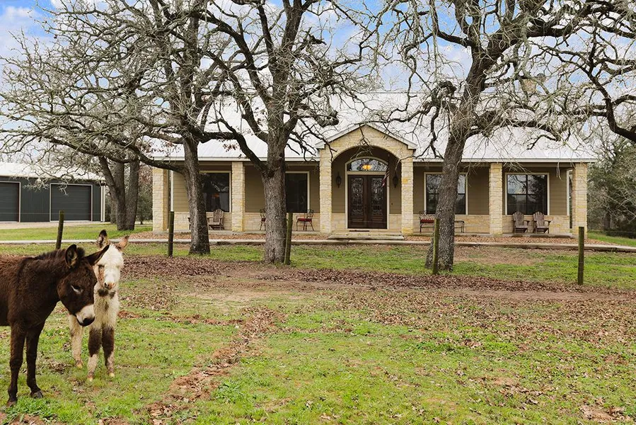 Outstanding 52+ acre property, located in Fayette county minutes from Flatonia. Upon entering the property, you start to relax as you wind through the woods and over a hill to this secluded hide away. A welcoming home, with an open floor plan is perfect for entertaining. A beautiful cooks kitchen with top of the line appliances-double ovens, warming drawer, gas cooktop surround by stone, huge granite island with a vegetable sink, ice maker and beverage cooler-all the bells & whistles are here! The master bedroom is tucked away with a study, French doors leading outside and a master bath retreat with a jetted tub, seamless glass shower, double sinks and a water closet. Upstairs there is an unfinished bedroom/bath/closet, if you need it, just waiting for your touches. Off the back of the house is a wonderful porch, 56x10 complete with a half bath and great views of the pond and stone fire pit. There is a nice garage that is climate controlled close to the house and a 4 stall horse barn with a tack room. A little further is the guest house, with a complete kitchen, bedroom, bath and a rock fireplace-all of the rocks were found on the property. There are 3 ponds, sandy soil and the perfect mix of improved pastures and woods with trails throughout. This is a very special property for weekends or full time living.