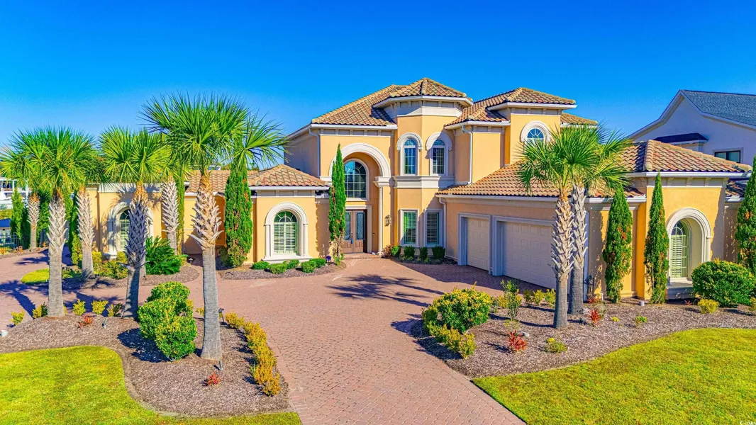 Mediterranean Waterfront Luxury in Plantation Point – Coastal Living at Its Finest. Offered considerably below 2025 official appraised value. Experience unparalleled elegance in this stunning Mediterranean-inspired estate, perfectly situated along the deep-water Intracoastal Waterway in the coveted Plantation Point community. Offering more than 5,000 heated square feet—and nearly 7,000 square feet under roof—this home delivers an impressive combination of sophistication, space, and effortless livability. Inside, you'll find 5 spacious bedrooms, 4 full baths, and 2 half baths, thoughtfully designed for both grand entertaining and everyday comfort. The open living areas flow seamlessly, highlighted by high-end finishes, abundant natural light, and one of the most exquisite boutique-style primary closets you’ll find anywhere on the East Coast. The outdoor living space truly elevates this property into a private resort. Enjoy a heated saltwater pool and spa, an expansive patio designed for relaxation, and a fully equipped summer kitchen perfect for hosting unforgettable gatherings. With your own private dock and high-capacity boat lift, waterfront adventures are always within reach. The estate also includes a generously sized three-car insulated garage, an additional golf cart garage, and a completely private guest or in-law suite featuring its own kitchen, bedroom, and bathroom—ideal for multi-generational living, an au pair, or personal staff. A whole-house Sonos sound system, installed in 2023, enhances the modern lifestyle this home provides. This rare offering captures the very best of Grand Strand living—luxurious, serene, and positioned directly on the Intracoastal Waterway. A true masterpiece for those seeking exceptional waterfront living.