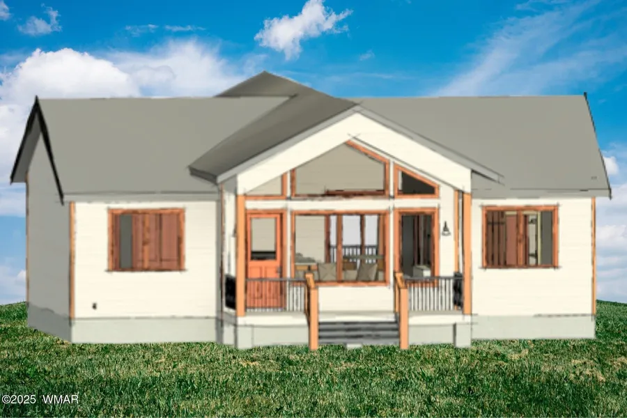 This thoughtfully designed 1,197 sq ft home offers an increasingly rare feature: two master bedrooms, each with its own private bathroom. Whether you're planning for guests, multi-generational living, or need a home office with an adjacent bath, this floor plan delivers flexibility without sacrificing comfort. The open-concept living room and kitchen features dramatic vaulted tongue-and-groove ceilings that create an airy, spacious feel, with large windows throughout that bring in abundant natural light and mountain views. The kitchen includes a convenient pantry/laundry room, ample cabinet storage, and space for a full appliance package. Both bedrooms are true retreats - the primary suite includes a walk-in closet and private bathroom with shower, while the second master offers its own closet and full bathroom with tub/shower combination. Outdoor living space includes a covered front porch with vaulted T&G ceiling and back deck for outdoor enjoyment. Construction features include durable metal roofing, LP lap siding with wood trim, and LVP flooring throughout. This is a home to be built. Buyer will purchase lot and contract with builder for the build. Any changes to this floor plan, may require additional charges.