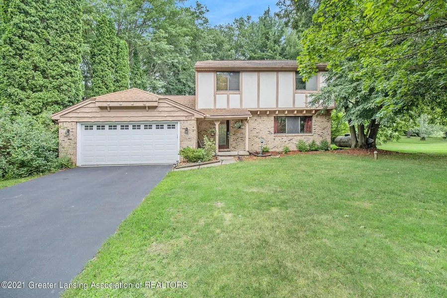 Okemos beauty offering a pinch over one acre located on private cul-de-sac, yet minutes to everyday conveniences. Spacious 4 bedroom, 2.5 bath, updated mechanicals and finished LL offers a turn-key home ready for your arrival. HW floors throughout majority of the home, along with fresh paint & crown molding. This amazing kitchen is the heart of this home-Quartz countertops, induction cooktop, double pantry, new stone backsplash, and additional wall oven with microwave. Adjacent family room is crisp & cozy along with its custom-made fireplace mantel. Enjoy extended entertainment space overlooking your private backyard from the patio & deck with pergola. Ultra-convenient 1st floor laundry doubles as mudroom from garage with closet & cabinets. You'll find 4 generous bedrooms upstairs - 1 currently being used as a dressing room. Primary bedroom includes tiled en-suite, jet tub, new vanity & walk-in closet. Additional hall bathroom is updated as well. Finished lower level!
