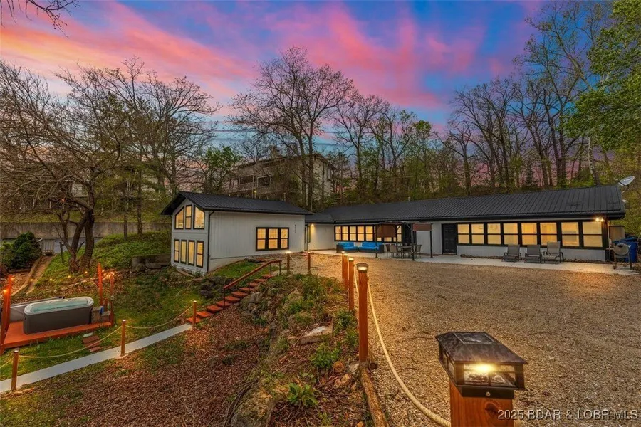 Turn-key lakefront home in the sought-after Grand Glaize arm, modern interior finishes, and strong short-term rental performance. Fully renovated with 5 bedrooms, a loft, and open-concept living that flows to plenty of outdoor seating and entertainment. Ideal for large families, vacationers, or investors seeking high-capacity rental income. Enjoy the spacious hot tub, lakeside firepit, and multiple indoor/outdoor gathering areas designed for comfort and entertaining. Located close to restaurants, shopping, and popular lake attractions. This property has so many opportunities with two separate entryways, making it possible to make it a duplex, one big short-term rental, or your dream lake home for all of your guests. Whether you're looking for a luxury getaway or an income-generating property, this home delivers on both lifestyle and return.