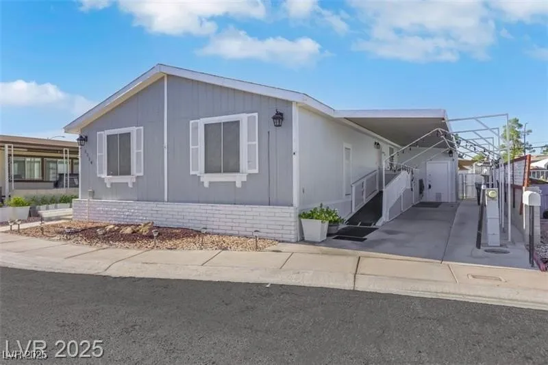 Absolutely gorgeous 3 bedroom/2 bath manufactured home in Desert Inn Mobile Estates II. *Seller is motivated and looking to sell fast* Converted to real property. Age Restricted community with amenities galore. Sparkling community pool. Clubhouse, RV Parking and roaming security. Water is included with the HOA. Property was recently remodeled with upgraded kitchen and fixtures. Shaker cabinets, quartz countertops and stainless steel appliances. New baseboards & Laminate wood flooring through out. Upgraded and modern bathrooms. Open and functional floor plan with vaulted ceilings. Drywall and no paneling. Newer HVAC System and swamp cooler. Fenced in backyard with huge storage shed. Covered tandem parking and so much more! Will not last long at this wonderful price.