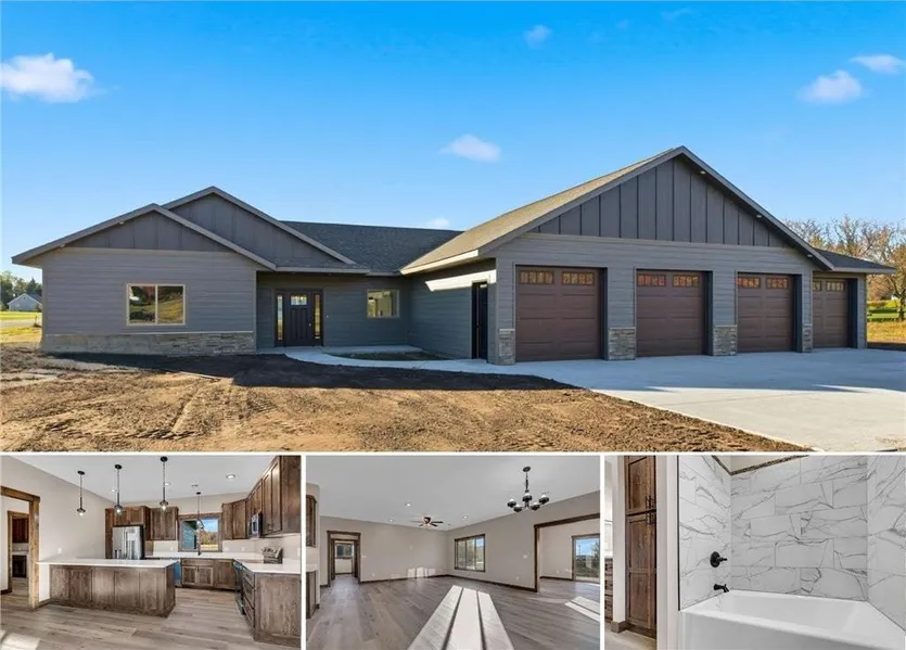 Beautifully designed new-construction home in White Oak Country Estates of St. Stephen! This single-level layout offers nearly 2,000 sq ft with 3 bedrooms, 2 full baths, and all living facilities on one level. The open-concept kitchen features a center island and custom cabinetry—perfect for entertaining. Enjoy the comfort of in-floor heat, a spacious family room, and a private primary suite with walk-in closet and full bath. Oversized 4-stall heated garage with finished interior and concrete driveway. Nestled on a 1.5-acre lot at the end of a quiet cul-de-sac, this home blends peaceful country living with convenient proximity to Sartell and St. Cloud. Move-in ready with quality finishes throughout!
