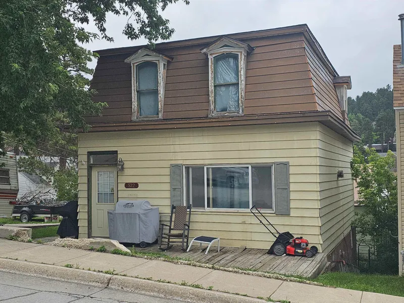 Two bed/2 bath home in Lead. Great potential for a single-family home. 2094 total sq ft. Two story with unfinished basement (one bath downstairs). Off-street parking. Walk-out basement but door has been sealed shut. Home is being sold 'as is' and needs some work. Cash or conventional loan will work to purchase this home.