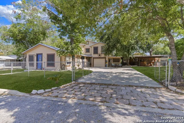 Discover the allure of this renovated 3-bedroom, 2-bathroom gem nestled on an expansive joined lot at 523 Dallas St, Pleasanton, Texas. Originally built in 1950, this home masterfully blends classic charm with modern comforts. The heart of the home features spacious areas perfect for entertaining, seamlessly connecting to an updated kitchen. Enjoy the Texas sun with an above-ground pool and a well-designed deck, perfect for summer gatherings. Additional outdoor amenities include a screened-in patio, a versatile detached workshop, a storage shed with a covered patio, and a charming chicken coop, all set within beautifully maintained grounds. The property boasts a newly paved driveway, enhancing its curb appeal and accessibility. This delightful residence is an idyllic sanctuary for those seeking a tranquil lifestyle with all the conveniences of modern living, making it a must-see in Pleasanton.