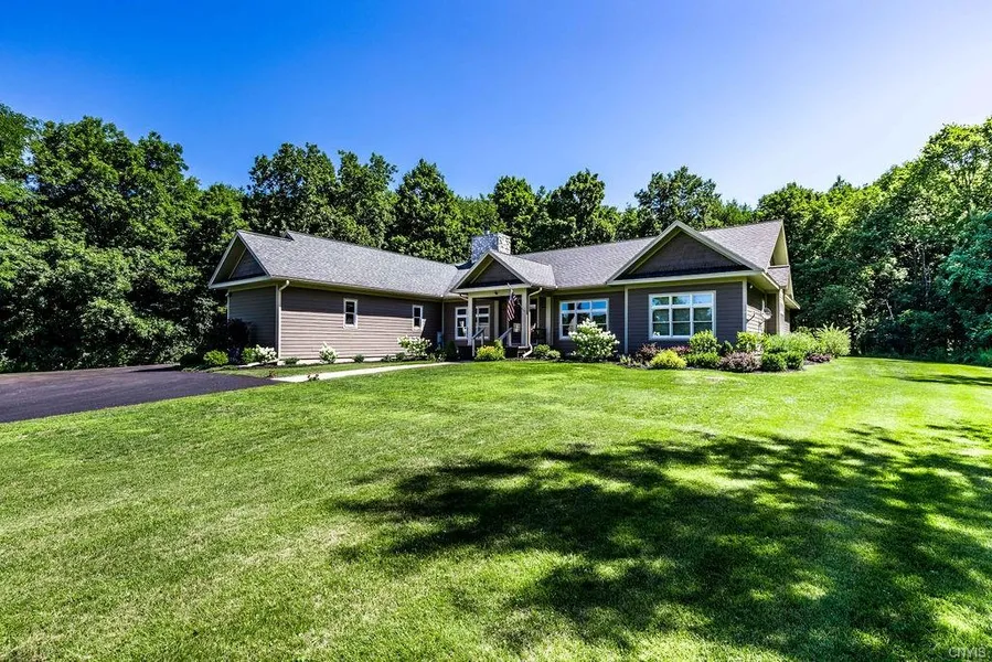 If you're looking for seclusion and complete privacy (yet just a short drive to DeWitt Wegmans) look no further. The open floor plan has 9-foot ceilings yet offers privacy. A few details: gorgeous trim, moldings, high-end built-ins, and charming hand-painted motifs throughout. Fabulous open-kitchen design offers granite, island with bar sink & seating for "visitors" while blending into the hearth and gathering rms...each with charming gas fplcs & access to backyd deck and woods...the perfect spot for those big family/friend get-togethers where everyone wants to be close to the kitchen, without crowding the cook(s). Enjoy the spacious dining room for special holiday feasts. Spectacular study with wood floors, wainscoting, built-ins & double french doors. Even the powder rm: beadboard, elegant patterned sink & carved Renaissance-inspired mirror! Cove ceilings and oodles of closet space featured in the private Master BR. The fin lower level features a deco-inspired wet bar, impressive wine vault, 2 level media area, huge open game room, pvt gym, workshop & storage. Backyd deck overlooks gardens and your private 5 acres complete with walking trails. Truly a nature lovers paradise!