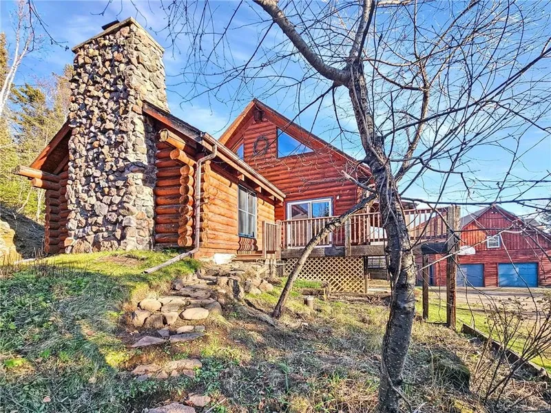 Located just off the shore of Lake Superior on Minnesota’s renowned North Shore, this 5-bedroom, 4-bath log home sits on 20 acres of fully wooded privacy with no neighbors in sight and offers multiple main-floor living spaces, vaulted ceilings, natural woodwork, timber construction, and two wood-burning fireplaces, plus a walkout lower level with additional living space. A major bonus is the 840 sq ft seasonal guest quarters above the detached 30x28 garage, featuring an open layout, its own wood-burning fireplace, and a 3/4 bath—ideal for guests or studio use. The property also includes a sauna, covered porch, large deck areas, and level forested ground ideal for trails, recreation, and year-round outdoor use, all just minutes from Silver Bay, state parks, trail systems, and the outdoor amenities that define the North Shore.