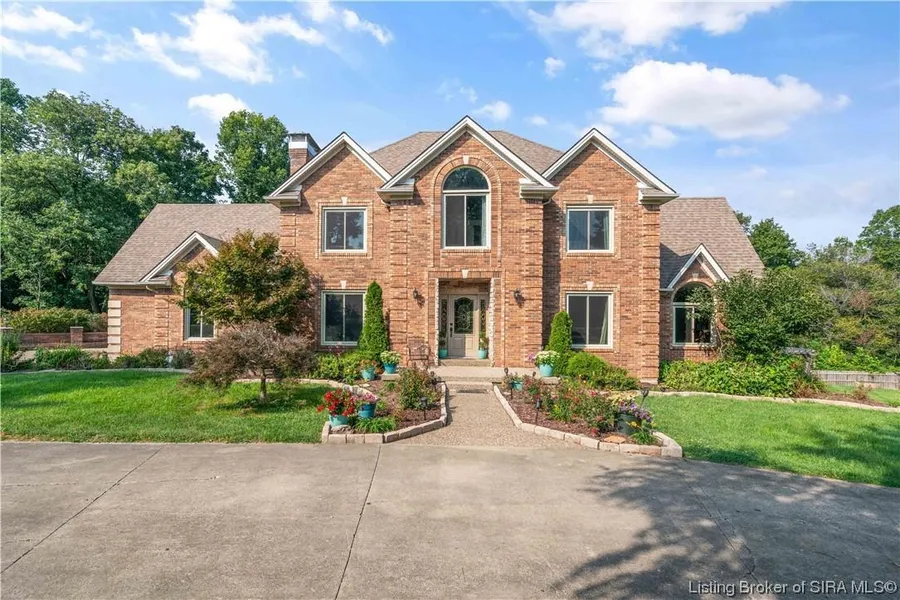 PRICED BELOW APPRAISAL! Experience the epitome of luxury in this exquisite 4500+ sq ft executive home in beautiful Floyds Knobs! Nestled on 1.8 acres of privacy, it offers culinary perfection with a chef's dream setup, featuring tons of prep and storage space, stainless appliances, stacked ovens, a separate wine/drink fridge, and more. The second kitchen in the basement is also expansive, with all stainless appliances, bar seating, and beautiful styling. Two master suites await you, with fireplaces and ensuite bathrooms and laundries in each; the main master even flaunts a wetbar, a programmable Kohler DTV shower, and heated bathroom floors. The 6th bedroom is in the basement and while there aren't any windows in this room, there are two points of entry to the room. Save on energy with solar panels, with the electric bill averaging just $11/month! Enjoy outdoor tranquility with a large koi pond, saltwater pool, and 5-seat Hot Springs Envoy hot tub. Don't miss the expansive decks and patios, perfect for entertaining. Come, discover your dream home, before it?s too late! Sq ft & rm sz approx.