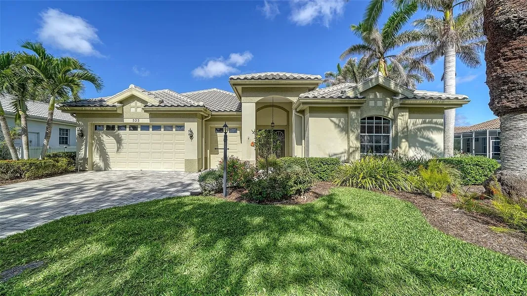Don’t miss this fantastic opportunity in The Venice Golf and Country Club! This spacious 3 bedroom, 3 ½ bath courtyard home has 2219 square feet of living space, a heated pool and golf cart garage. As a bonus for a golfer, it comes with the OPPORTUNITY TO JOIN IMMEDIATELY AS A GOLF MEMBER and avoid the waitlist. Enter from the courtyard into the spacious living and dining room. The large kitchen with granite countertops, breakfast bar, pantry and center island is the heart of the home. The sunny dinette and adjacent lanai have a fabulous view of the 11th green. The private master bedroom has a large walk-in closet and en-suite bath with dual vanities, and walk-in shower. The 2nd bedroom has sliding doors to the courtyard and a private bath which could also be used as a Den. The private casita is the 3rd bedroom (or Den) and bath is perfect when entertaing out-of-town guests. There is a very large laundry room providing additional storage space. Among the many improvements are roof replacement (2017), solar panels added to heat the pool (2017), pool cage (2020), and the A/C was replaced in 2020. VGCC is a welcoming community of 587 homes. Enjoy both casual and formal dining in the newly renovated Clubhouse. Meet and make new friends in the bar with a large outdoor terrace, or on cooler evenings enjoy a beverage by the fire pit. There are a wide variety of activities in addition to golf including tennis, bocce, bridge, mah-jongg, the “U” with cultural presentations, wine club, special club events, and more. Take a class or work out in the Wellness Center with state-of-the-art equipment or take one of a variety of fitness classes. VGCC, with its 26 ponds and 13 natural preserves, is an Audubon Geo-Certified community. This is immediately apparent when you enter through the main gate with its canopy of oak trees and drive down the tree lined and curved streets. VGCC is just 5 miles from the quaint town of Venice and just 20 miles south of Sarasota. MEMBERSHIP IS MANDATORY. Choose between Golf Membership or Club Membership.