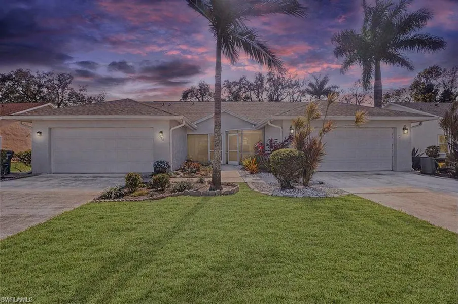 Welcome to this beautifully renovated residence in the sought-after Lely Golf and Country Club, where style, comfort, and outdoor living come together seamlessly. Offering 3 bedrooms, 2 bathrooms, and a spacious 2-car garage, the home features a bright, open layout with soaring vaulted ceilings and an abundance of natural light. Step into your private backyard retreat, highlighted by newly installed brick pavers-perfect for gatherings, grilling, or simply relaxing. Surrounded by mature landscaping and colorful garden beds, the outdoor space provides both beauty and tranquility. Both the front and rear screened lanais-each fitted with new screen doors-extend your living area and invite you to enjoy Florida's serene climate year-round. Recent upgrades completed in 2023 include new gutters, plantation shutters, stylish modern lighting, floor-to-ceiling tile in both bathrooms, updated HVAC ductwork, a new water heater, and a new garage door with opener. The roof was replaced in 2019, and a brand-new LG refrigerator was added in 2024, giving you peace of mind for years to come. The Lely Golf and Country Club community is known for its low annual HOA fee of just $825 and a rental-friendly policy (up to four leases per year, with a 30-day minimum), making this home an excellent primary residence or investment opportunity. Sidewalk-lined streets and a quiet neighborhood feel create the perfect backdrop for everyday living. With its thoughtful floor plan and extensive updates, this move-in-ready home invites you to start enjoying the Florida lifestyle from day one.